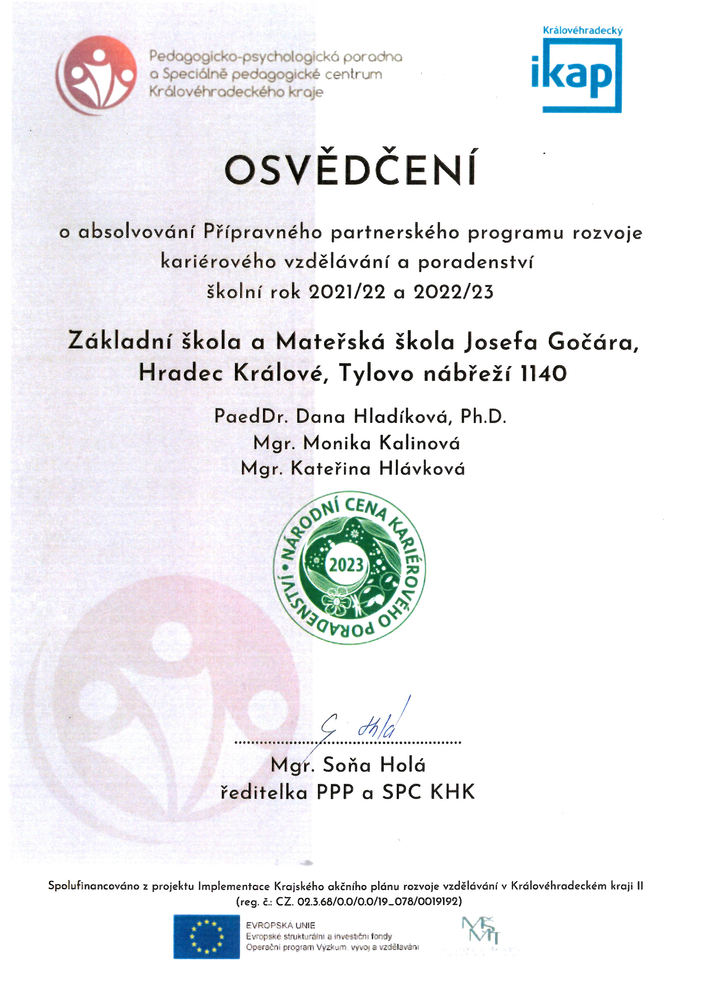 Naše škola je aktivně zapojena do níže popsaného projektu Implementace Krajského akčního plánu rozvoje vzdělávání v Královéhradeckém kraji II (I-KAP KHK II)